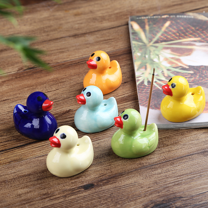 陶磁器のアヒルの香は家庭用の室内線の香座に挿し込んで、小さい黄色のアヒルの置物の家庭の室内の金線の香は卸売りを挿します。