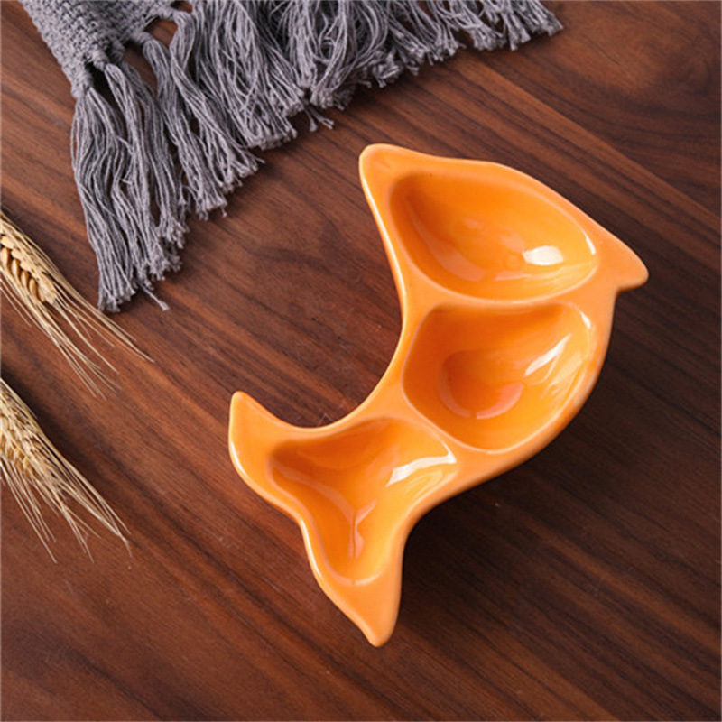 かわいいアニメ海洋生物イルカ陶磁器三格調味料皿鍋焼肉調味料酢皿おかず皿