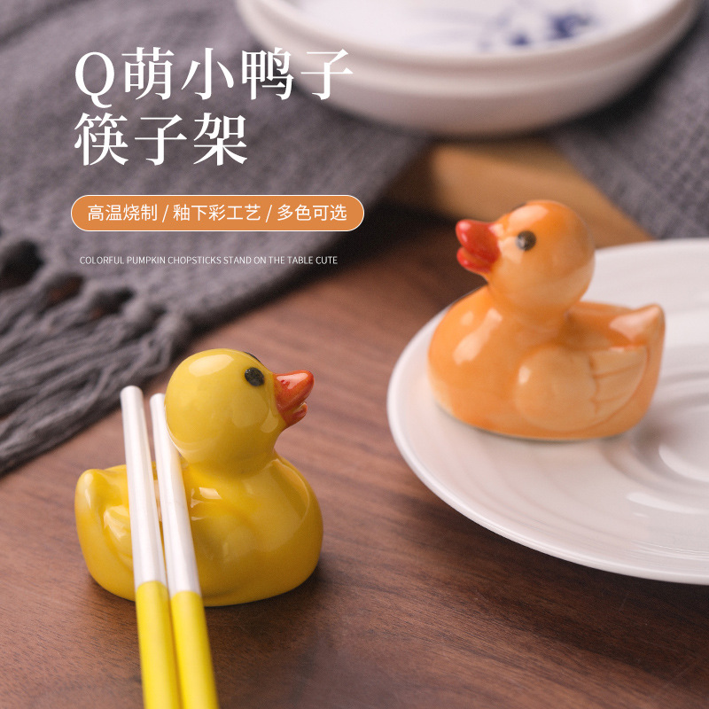 Zakka日本式雑貨小黄鴨食器用品陶磁器箸棚小鴨個性工芸品箸托箸枕
