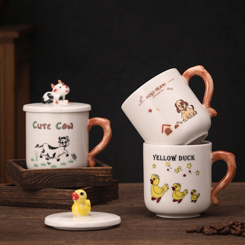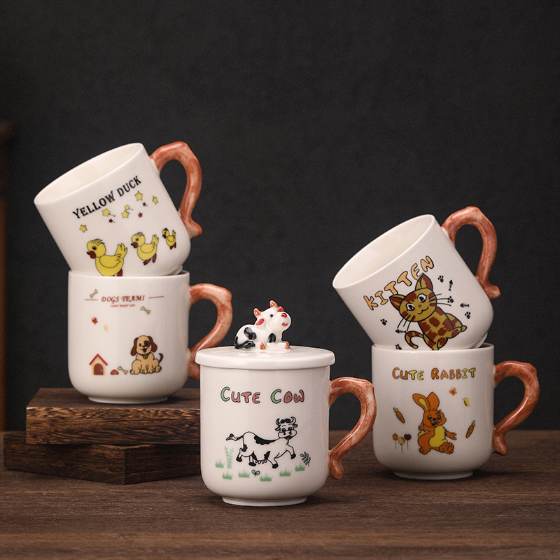 かわいい漫画セラミックマグカップ子供朝食カップ子牛ウサギ水カップパンダ子犬小黄鴨コーヒーカップ