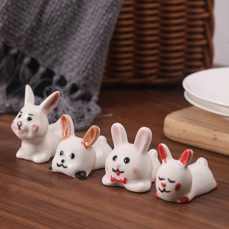ゼカ日本式陶磁の箸立ての小さい白兎の箸は筆立ての工芸品の置物のホテルの小さい置物の卸売りを頼みます。