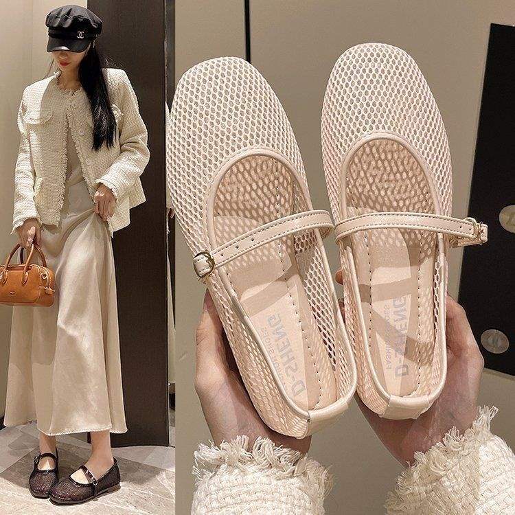 2025年の新しいレトロなメリージェーンの女性用シューズ: クラシックなシングルシューズのデザイン、浅い口、スクエアトゥ、通気性と多用途の形状