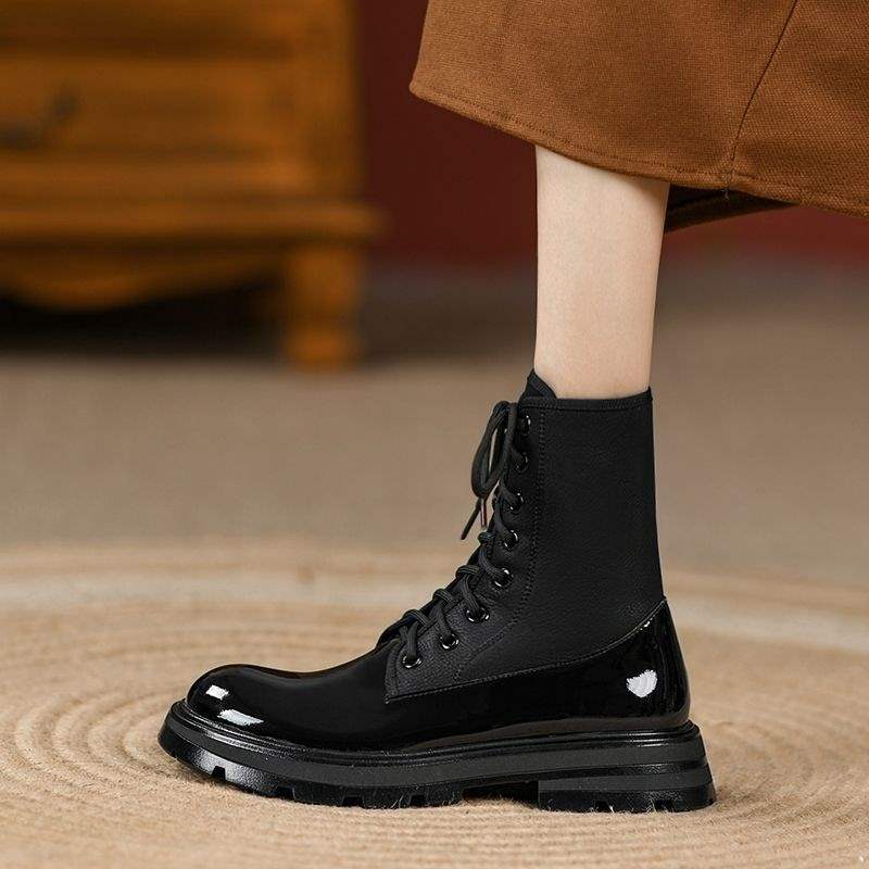 甘くてクールな厚底マーティンブーツ女性用 2025 秋の新作黒多用途オートバイブーツ高さを高める英国スタイルのショートブーツトレンディ