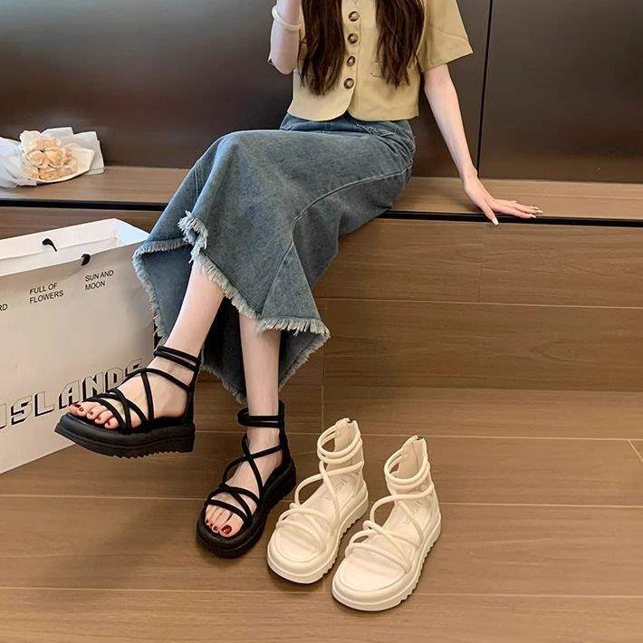 Yuechen サンダル女子学生 2025 新しい夏の多用途デザインニッチ気質プラットフォーム厚底ローマンサンダル