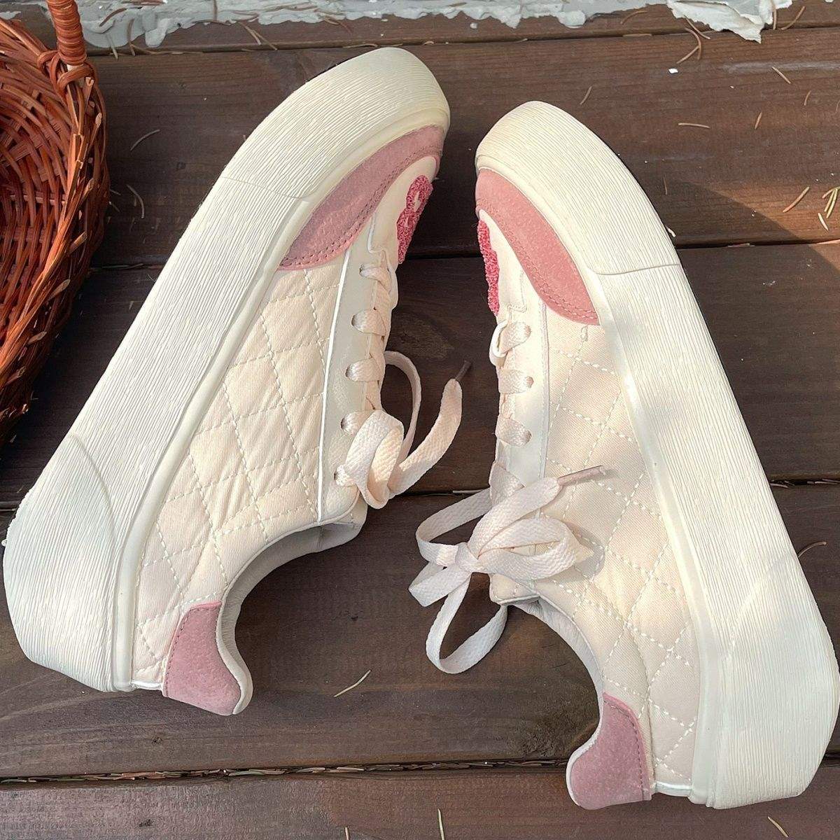 2025 春の新作厚底ワッフルキャンバスシューズ女性の韓国語版イントレンディな多用途の白い靴