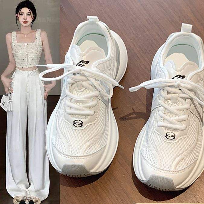 お父さん靴婦人靴 2025 新しい夏多用途白靴メッシュ通気性カジュアルスポーツメッシュ靴シングルシューズ