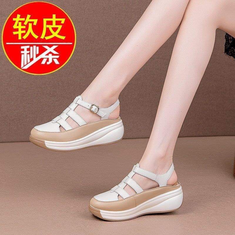 女性用サンダル 2025 夏の新スタイル包頭婦人靴プラットフォームソールカラーマッチングワンラインバックルサンダル女性用
