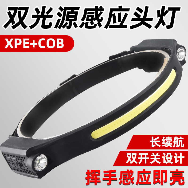 国境を越えた新型xpg + cob誘導ヘッドライトtype-c充電屋外赤色警告led強光作業ヘッド