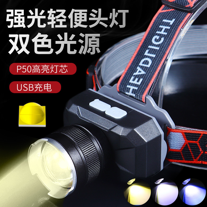 クロスボーダー强い光ヘッドライトハイライトヘッドセット懐中电灯夜钓り用充电led屋外照明ライト小さなヘッドライト
