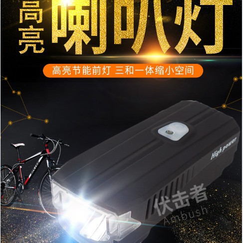 マウンテンバイクライトヘッドライト強力ライト懐中電灯usb充電帯電ラッパ鈴騎乗装備部品