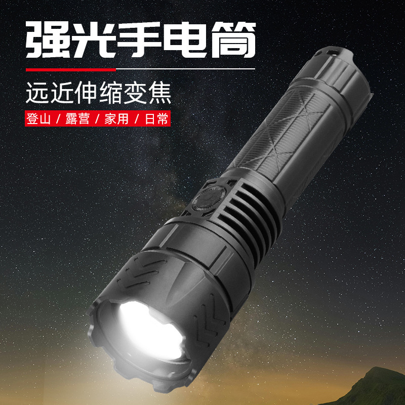 待ち伏せ者屋外LED強力懐中電灯USB充電長航続携帯電話伸縮ズーム大出力携帯手