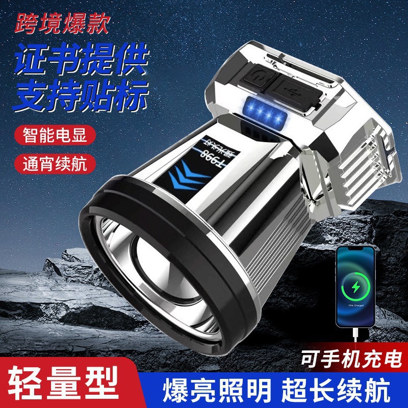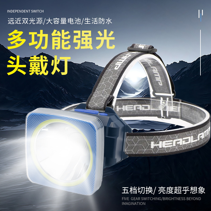 LED屋外強光ヘッドライト多機能遠射サーチライト電気量表示出力長航続キャンプ釣りライト