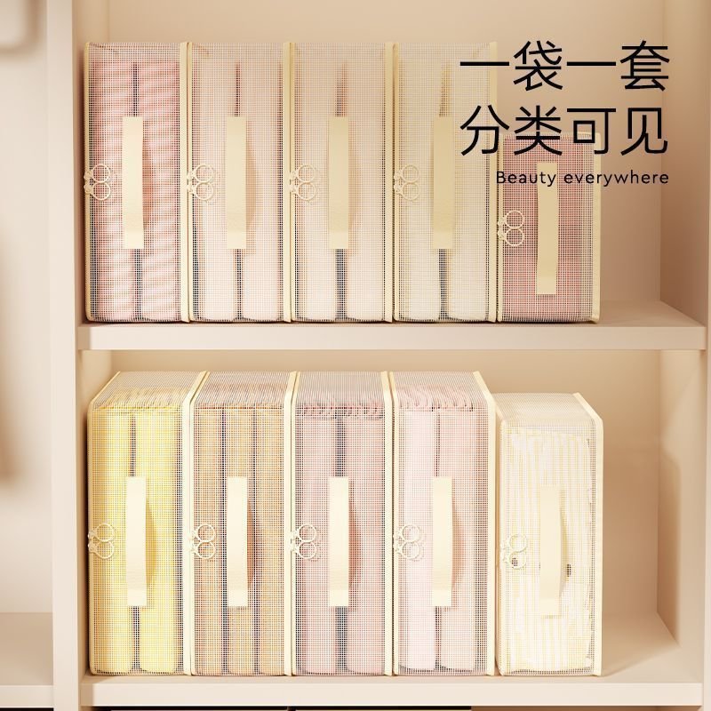 寝室のワードローブ整理用の収納バッグ4点セット、季節の掛け布団、ベッドの下の引き出し収納ボックス、持ち手付き、通気性あり