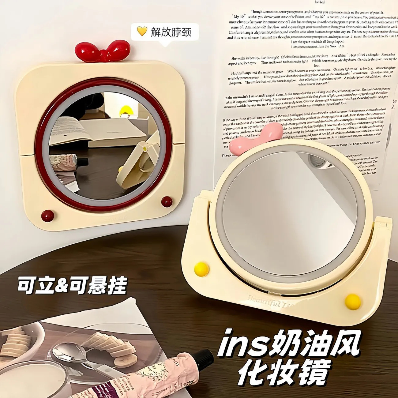 ins 化粧鏡ポータブルデスクトップ壁掛け寮デスクトップミラー学生寮パンチド化粧鏡回転