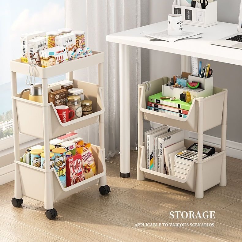 トロリー収納ラック家庭用スナック床置き多層リビングルーム収納本棚モバイルキッチン果物と野菜バスケットラック