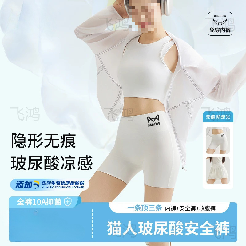 Catman プロバイオティック抗菌ヒアルロン酸パンツ、女性用、露出防止、カールなし、シームレス 4 イン 1 レギンス