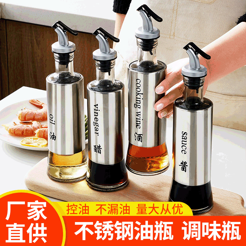 ステンレス鋼ガラスオイルボトルオイルボトルガラスステンレス鋼オイルボトル口ガラスオイルポット台所ガラスオイルボトル小さなオイルポット