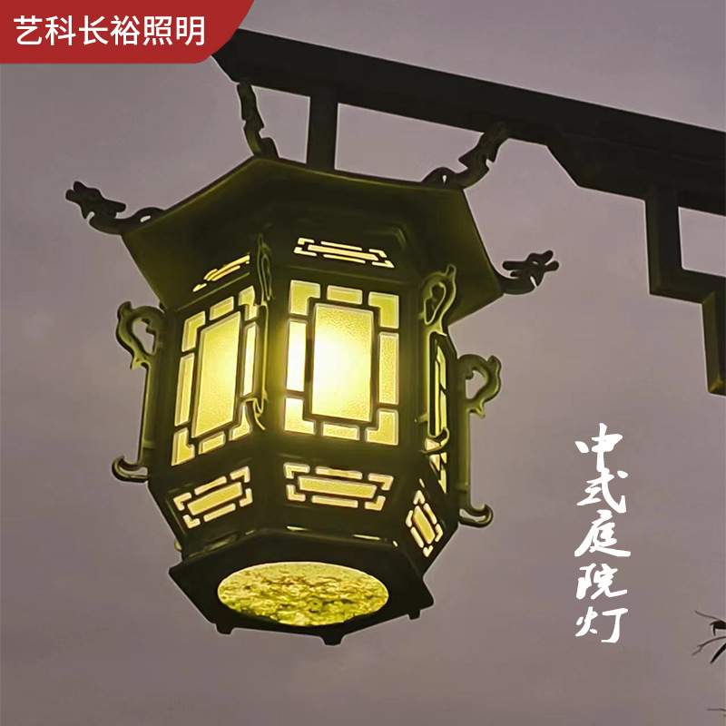 庭園の景観の明かりの中国式の提灯の明かりの竿の復古の雰囲気は古い亜鉛メッキのアルミニウムの外殻のアクリルの提灯をまねます。