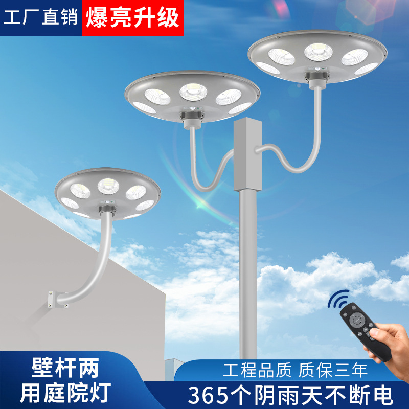 一体型太陽光路ランプヘッド円盤360度発光空飛ぶ円盤モデル柱ランプポール式壁式庭灯