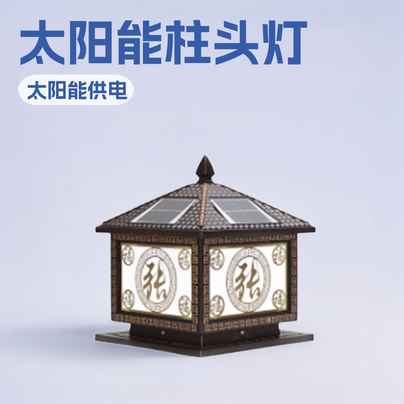 百家の苗字の太陽エネルギーの柱のヘッドライトの苗字の柱のヘッドライトの四角形の瓦の蓋の尖った天井のヘッドライトの福字の柱のヘッドライト