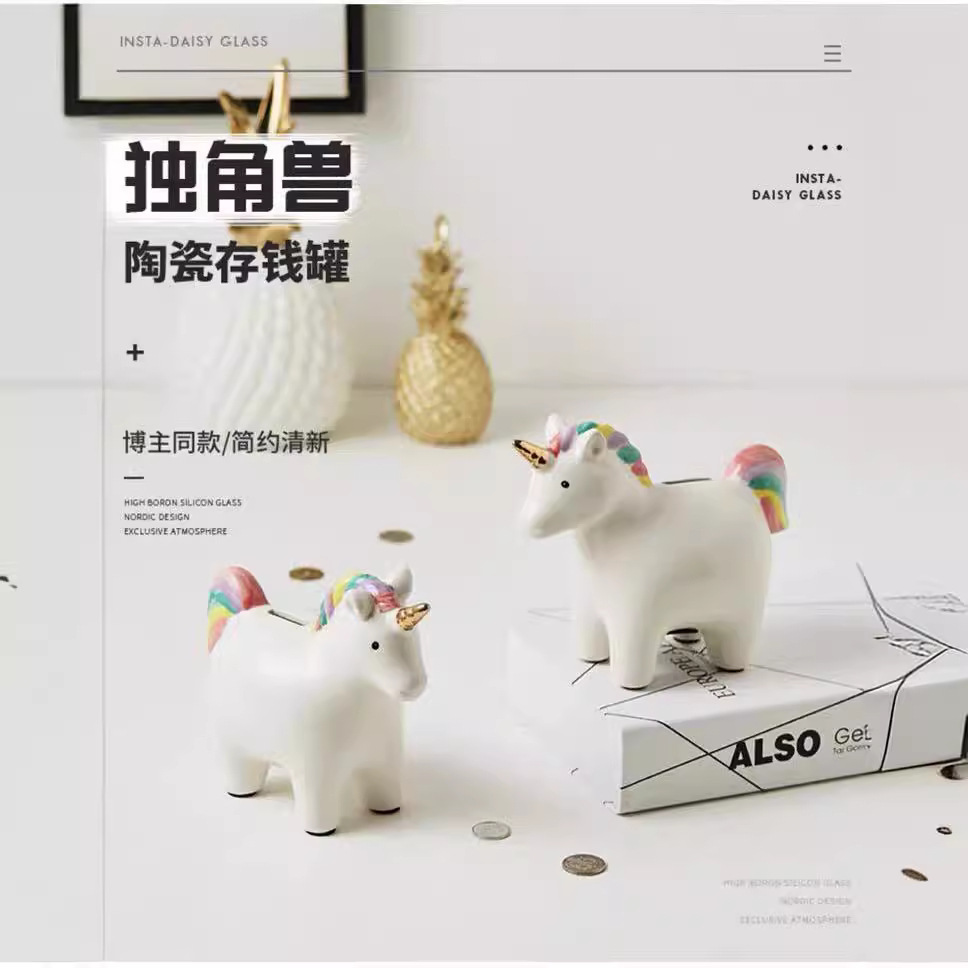 ヨーロッパ式彩色陶磁器ユニコーン貯金箱創意子供漫画貯金箱創意家庭装飾品クリスマスプレゼント