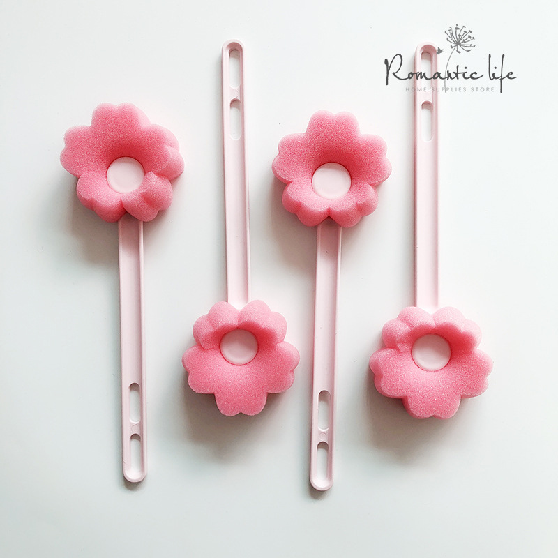日単創意ピンクの花の長い柄のコップはスポンジのコップの清潔なブラシを塗ってコップの創意の哺乳瓶のブラシを洗うことができます。
