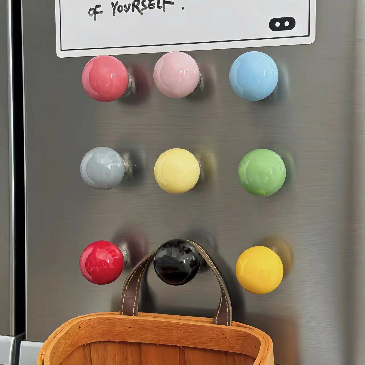 カラー陶磁器のボールの強力な磁気吸引フックの装飾の冷蔵庫は愛の収納棚の穴の板を貼って家に入ります。