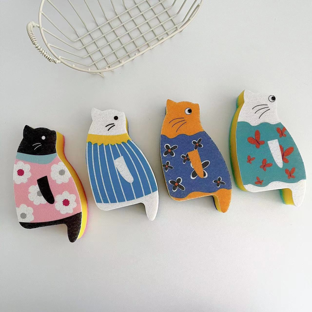 日本式厨房家庭用皿洗いスポンジ皿洗いブラシ座式猫かわいいアニメ皿洗い布百洁布スポンジ拭き