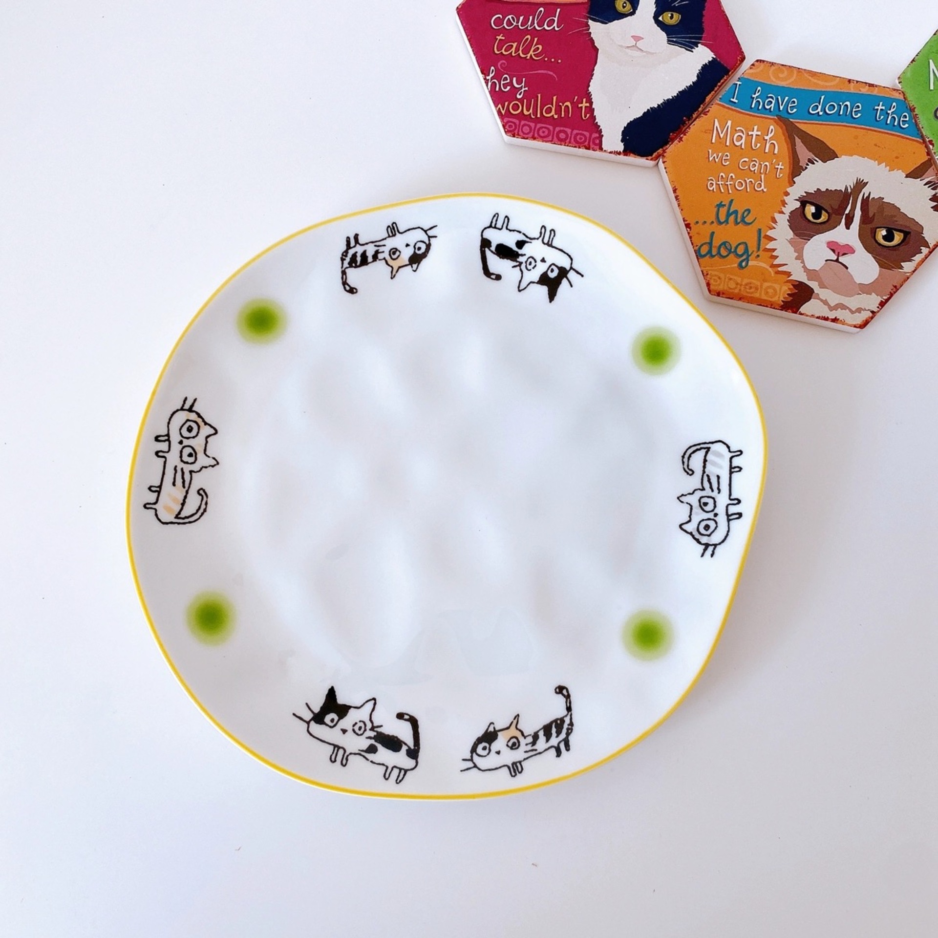 日本式の不規則な陶磁器の皿のかわいい猫の食事の皿のデザートの皿の家庭用サラダの碗は皿の朝食の皿のプレゼントを言います。