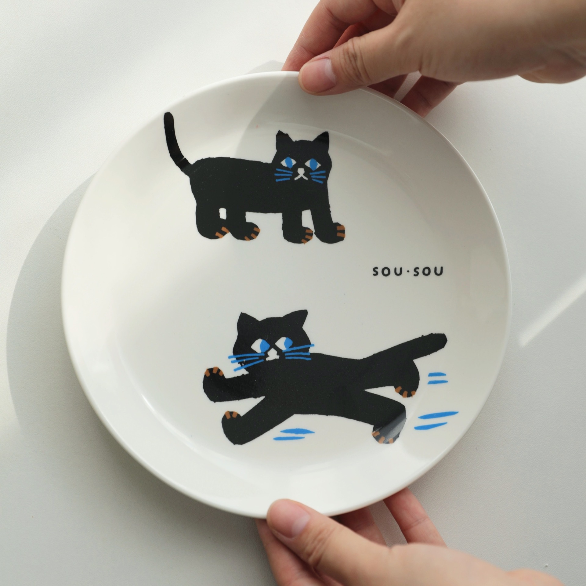 Insかわいい黒猫セラミック皿デザートケーキ皿家庭用高颜値菓子果物皿カード皿