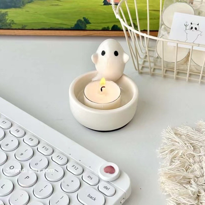 Insかわいい幽霊陶磁器燭台置物食卓香薫ろうそく台ハロウィーン写真装飾配置道具