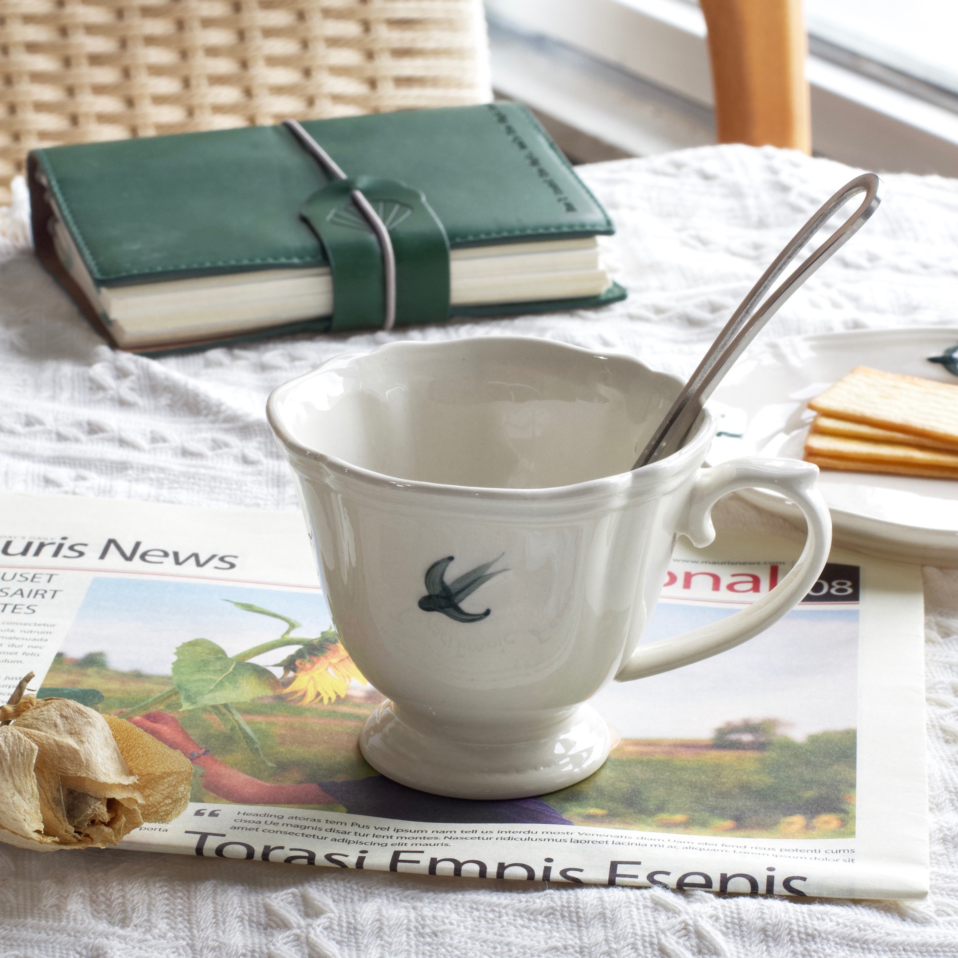 日本レリーフ陶磁器カップ手描きツバメコーヒーカップ皿レトロ米白色マグカップ飛鳥昼寝カップ