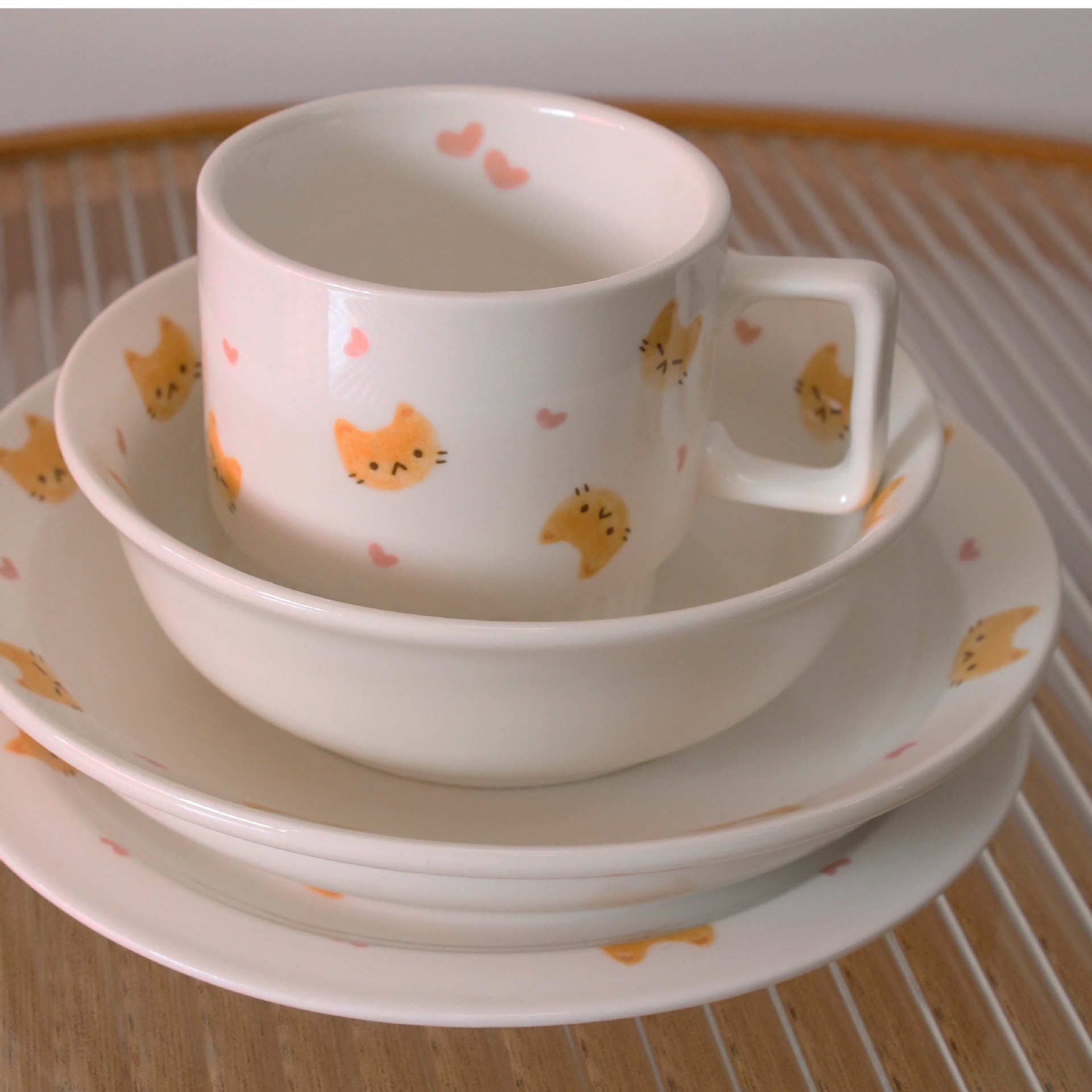 Ins風かわいい萌え猫セラミック食器セットマグカップ茶碗スープ茶碗家庭用デザート皿朝食皿