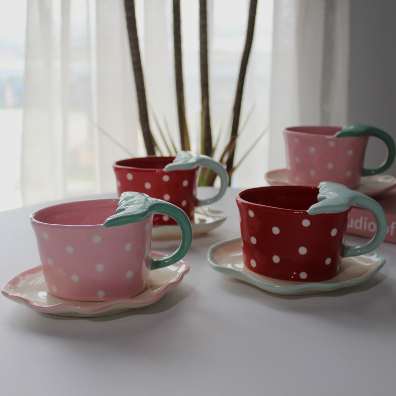 赤いいちごコーヒーカップかわいい少女心手描き釉薬下彩陶磁器カップ皿家庭用昼寝カップ