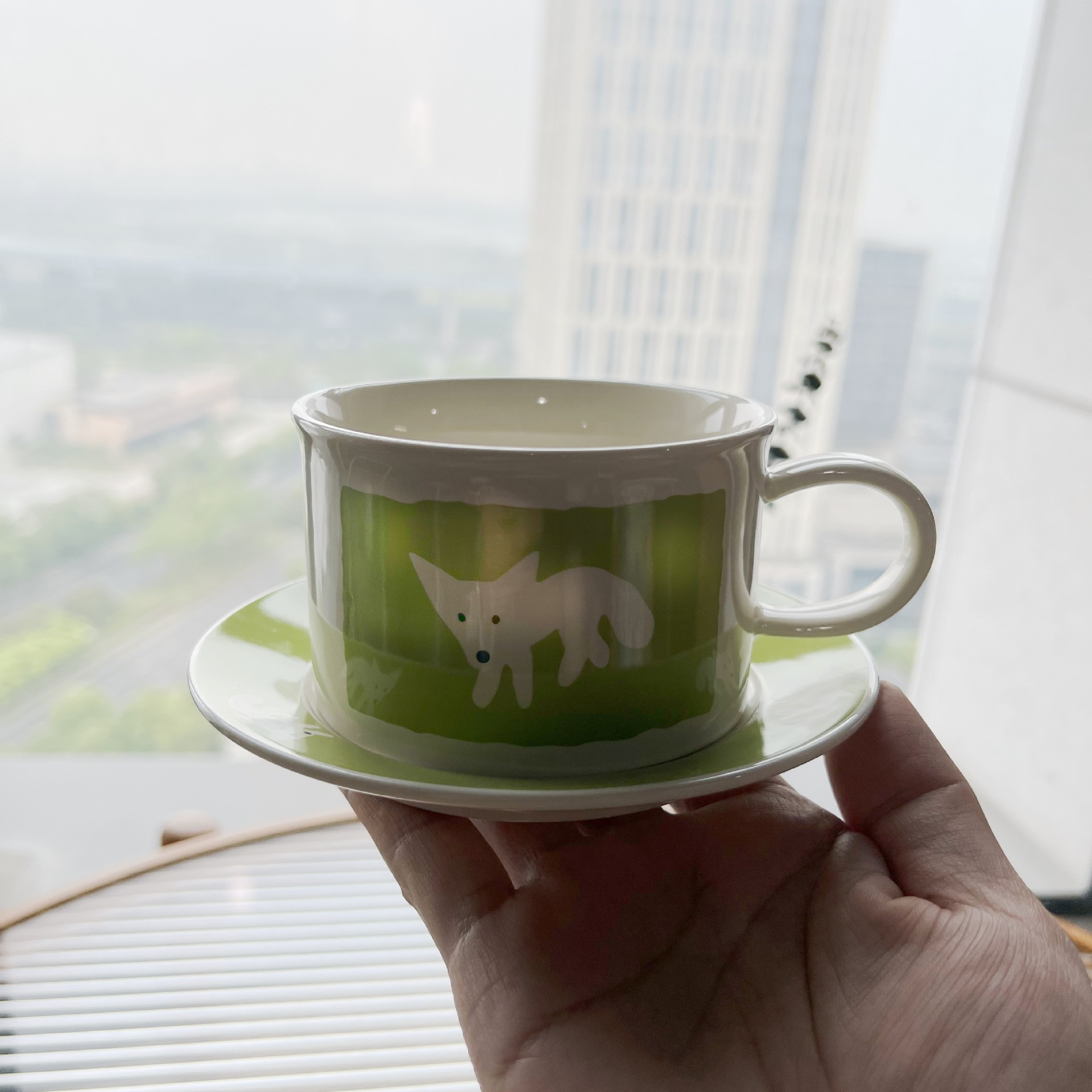 大口径の緑の狐の復古の小さい清新な韓国式の風の陶磁器の杯の皿の下で昼寝のお茶の家庭用のコーヒーの杯の皿