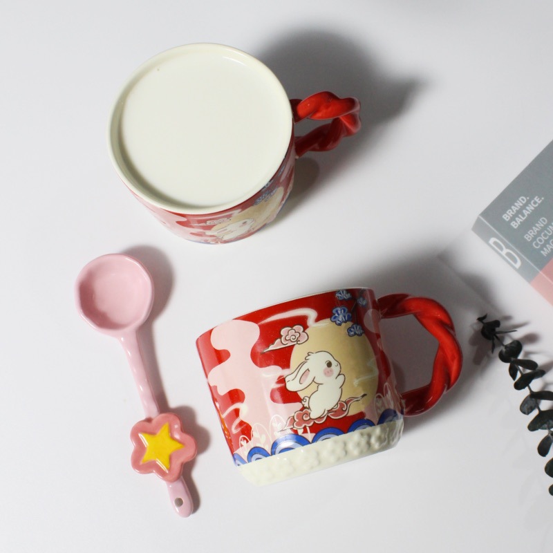 日本式陶磁器カップ創意家庭用ウサギの花マグカップ可愛い牛乳カップ子供用コップレトロコーヒーカップ