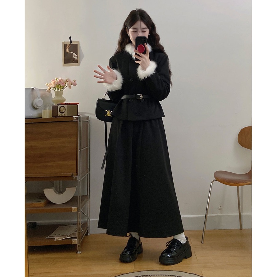 偽の2枚のガーディアンの女性は冬にベルベットを厚くして2023の新しいゆるい白い縁の上着をつなぎ合わせて洋気コートを着る