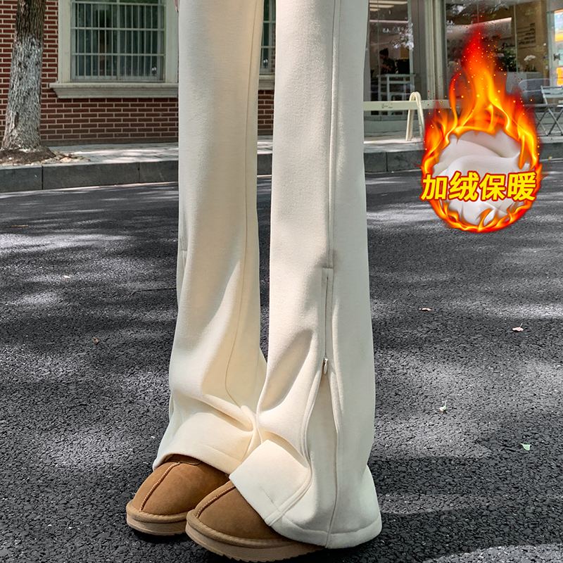 アメリカのオープンフォークの小さいラッパのズボンの女性の冬のベルベットの側のファスナーのもち米のズボンの高い腰はやせています。