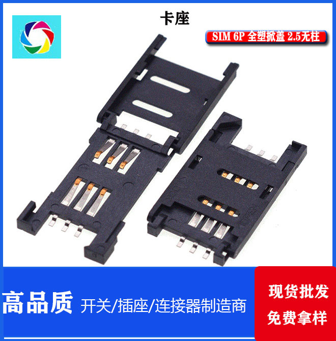 Sim 6p全塑性カバー2.5無柱カバー式カードホルダー接点金メッキsimカードシートコネクタ