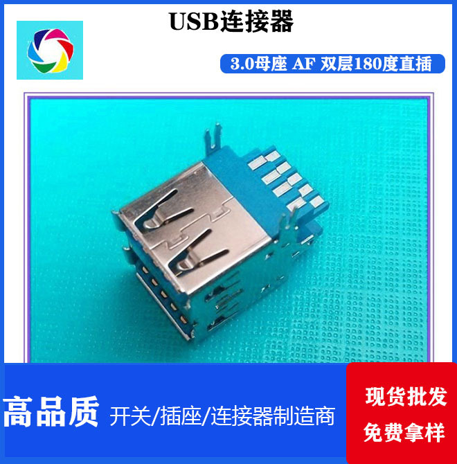 Usbコネクタ3.0母座af二重180度インライン90度フォーク足二重3.0