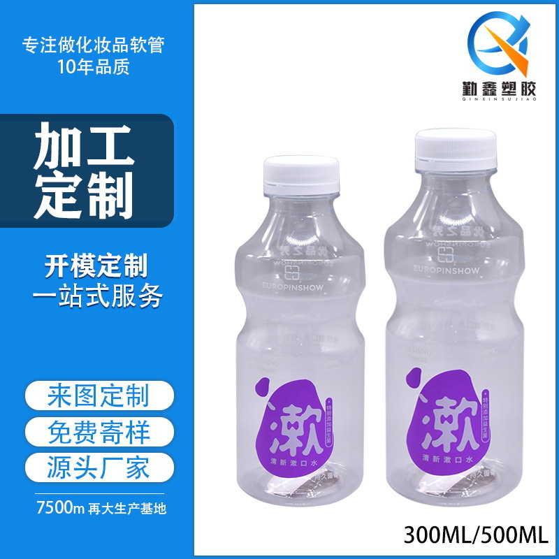 カスタム300ml/500mlボトルのプロバイオティクスと同じプラスチック製の計量カップ付きpet透明嗽ボトル