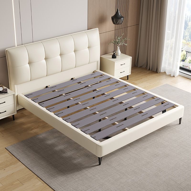 クリーム風の軽い豪華な現代ベッドの本皮ベッドの主な寝室は極めてシンプルで、現代的な二人のネットの赤い中に収納ベッドが埋め込まれています。