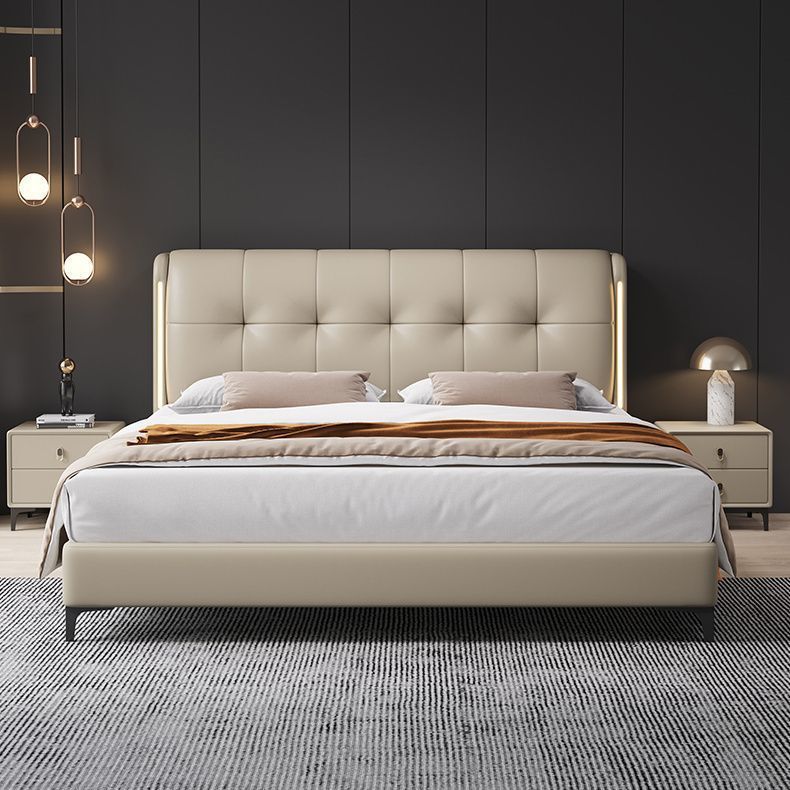 トップの牛革ベッドは現代的にシンプルで、本革ベッドは主に二人の結婚ベッドに寝ています。