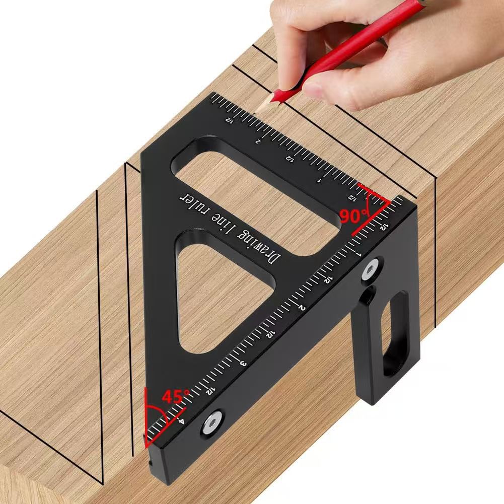 送料無料工場アルミプロファイル加工45 ° 90 ° 木工線画スケール 3D 多機能定規 穴付き三角定規