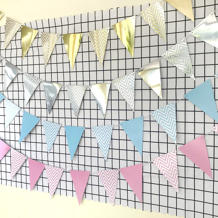 北欧ins波紋箔押し三角旗祭りパーティー装飾五角星拉旗三角旗横断幕