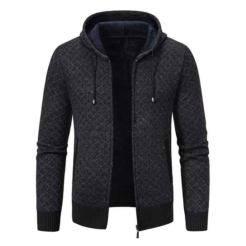 メーカー卸売クロスボーダー秋冬新作ニットメンズジャケットフード付きスリムショートカジュアルセーター男性