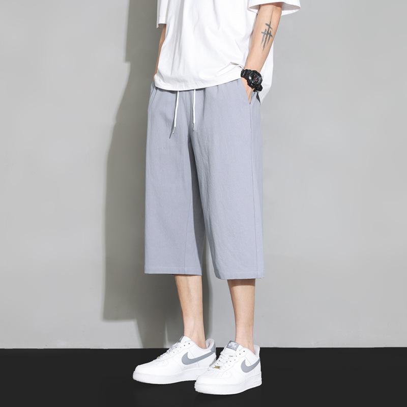 2024新中国式亜麻7分ズボン夏男性綿麻カジュアルパンツ中国風ゆるい7分ズボンパンツ