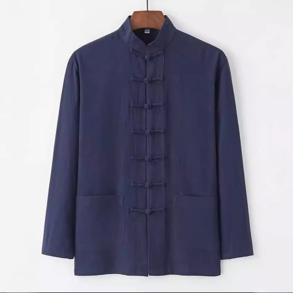 中国風カジュアルスーツ男性唐服装漢服中高年レトロ盤ボタンゆるい立襟シャツズボン2点セット
