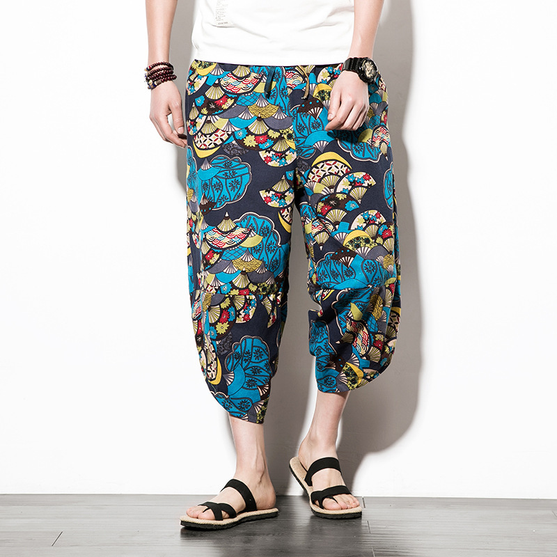 クロスボーダー夏服男性七分ズボンスポット大サイズ中国風ビーチズボン砕花薄金ゆるいクロスボーダー男性ズボン