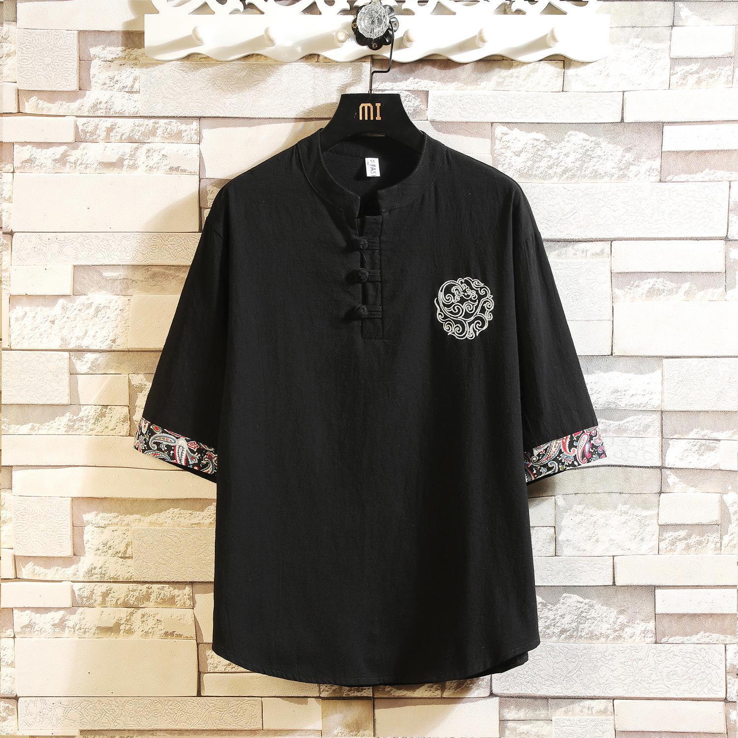 中国式唐装綿麻復古風男装カジュアル上着中国風盤ボタン亜麻シャツ男性半袖tシャツ